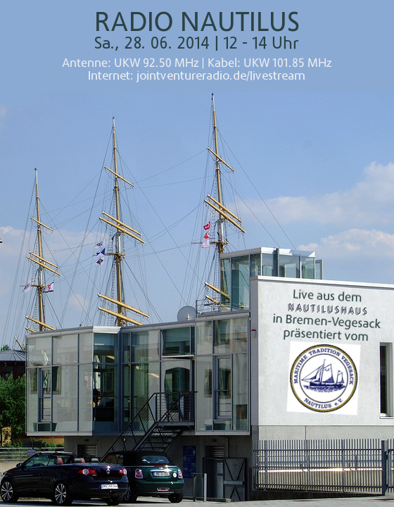 Am Sa., den 28. Juni von 12 bis 14 Uhr gibt es wieder „Radio Nautilus“ – live aus dem Nautilushaus in Bremen-Vegesack! 🙂