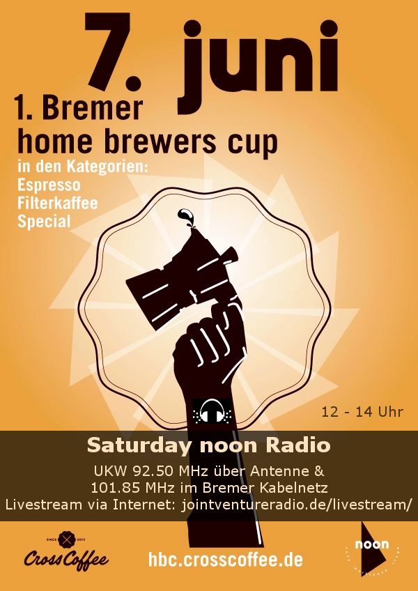Die Sendung ist außerdem Teil des 1. Bremer „Home Brewers Cup“ – präsentiert von CrossCoffee zusammen mit dem noon Cafe und dem JVR Network! 😉