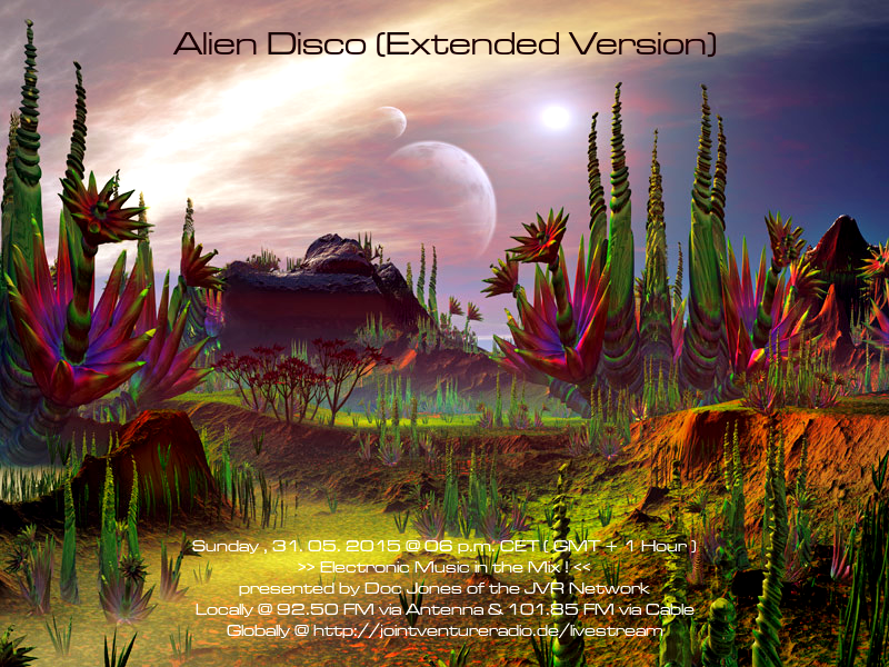 Am Sonntag, den 31. Mai von 18 bis 20 Uhr wird es die Sendung „Alien Disco (Extended Version)“ – live und direkt aus dem „Ivory Tower“ Studio in Bremen-Grohn – u. a. mit 2 neuen DJ Mixes präsentiert von Doc Jones geben! 😀