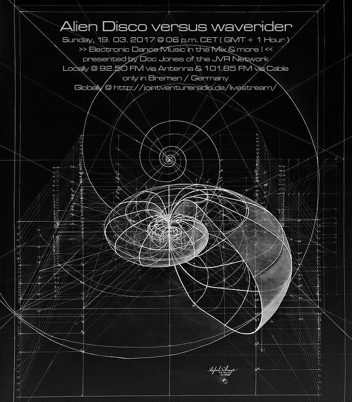 Am So., den 19. März von 18 bis 20 Uhr wird es die Sendung „Alien Disco versus waverider“ – live und direkt aus dem „Ivory Tower“ Studio in Bremen-Grohn – mit einem neuen DJ Mix und noch einigen von Doc Jones individuell ausgewählten und präsentierten Stücken geben! 😀