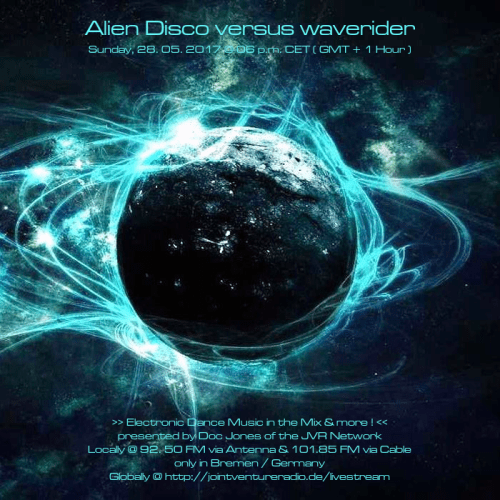 Am So., den 28. Mai von 18 bis 20 Uhr wird es die Sendung „Alien Disco versus waverider“ – live und direkt aus dem „Ivory Tower“ Studio in Bremen-Grohn – mit einem neuen DJ Mix und noch einigen von Doc Jones individuell ausgewählten und präsentierten Stücken geben! 😀