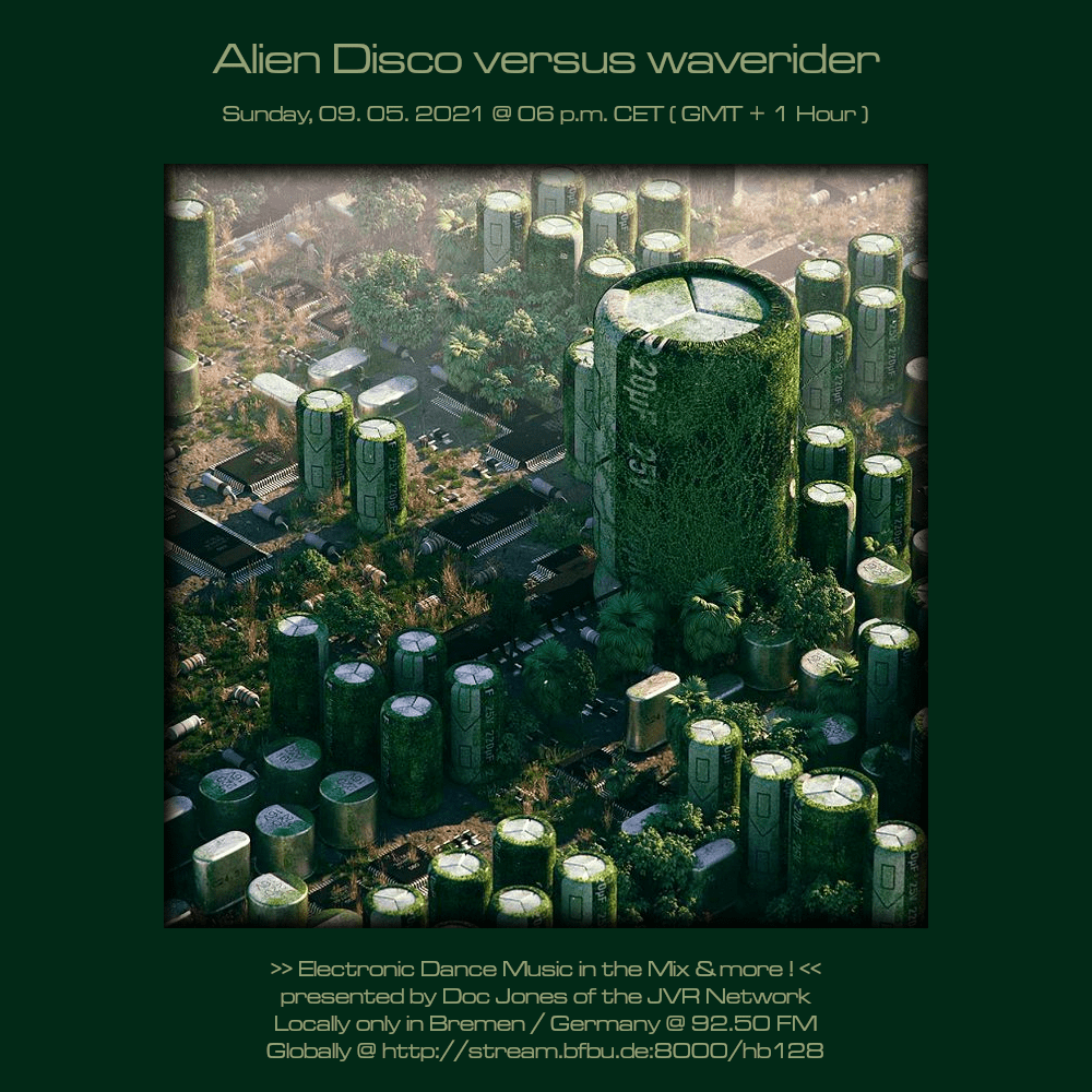 Am So., den 09. Mai von 18 bis 20 Uhr wird es die Sendung „Alien Disco versus waverider“ – live und direkt aus dem „Ivory Tower“ Studio in Bremen-Grohn – mit einem neuen DJ Mix und noch einigen von Doc Jones individuell ausgewählten und präsentierten Stücken geben! 😀