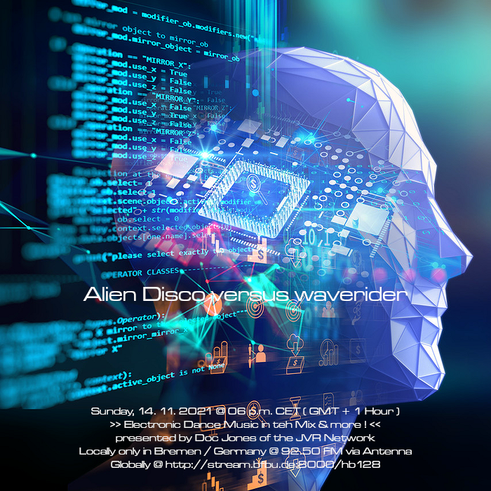 So., 14. November von 18 bis 20 Uhr -> „Alien Disco versus waverider“ (DJ Mix & individuelle Stücke) aus dem „Ivory Tower“ Studio von Doc Jones