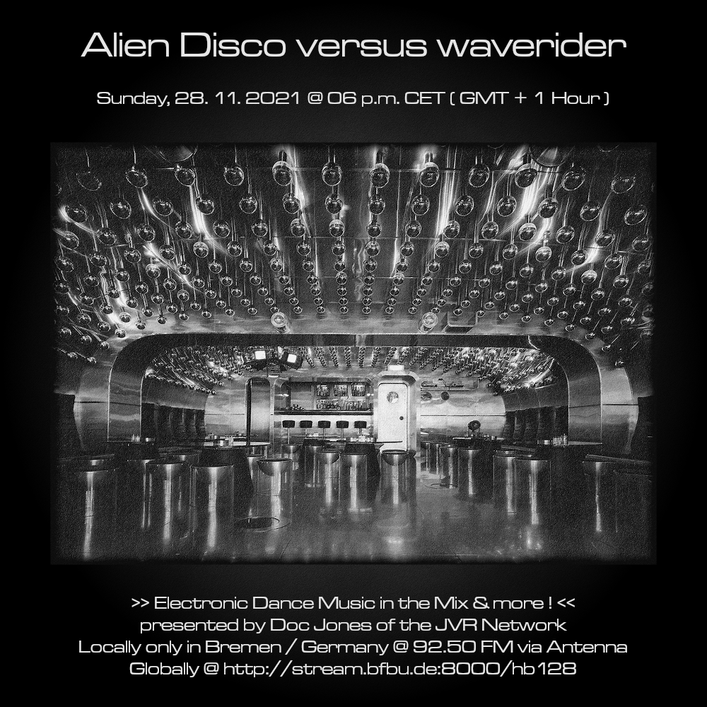 So., 28. November von 18 bis 20 Uhr -> „Alien Disco versus waverider“ (DJ Mix & individuelle Stücke) aus dem „Ivory Tower“ Studio von Doc Jones
