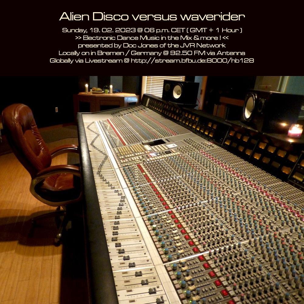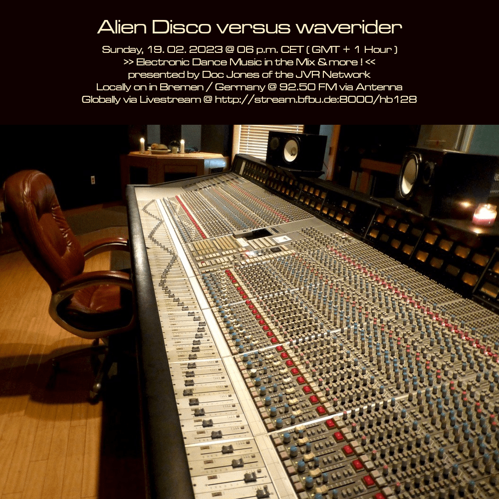 So., 19. Februar von 18 bis 20 Uhr -> „Alien Disco versus waverider“ (DJ Mix & individuelle Stücke) aus dem „Ivory Tower“ Studio von Doc Jones