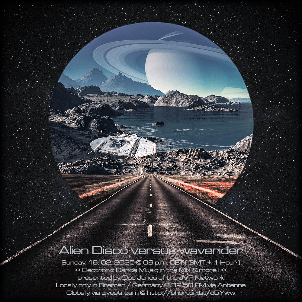 Am So., den 16. Februar von 18 bis 20 Uhr wird es die Sendung „Alien Disco versus waverider“ – live und direkt aus dem „Ivory Tower“ Studio in Bremen-Grohn – mit einem neuen DJ Mix und noch einigen von Doc Jones individuell ausgewählten und präsentierten Stücken geben! 😀
