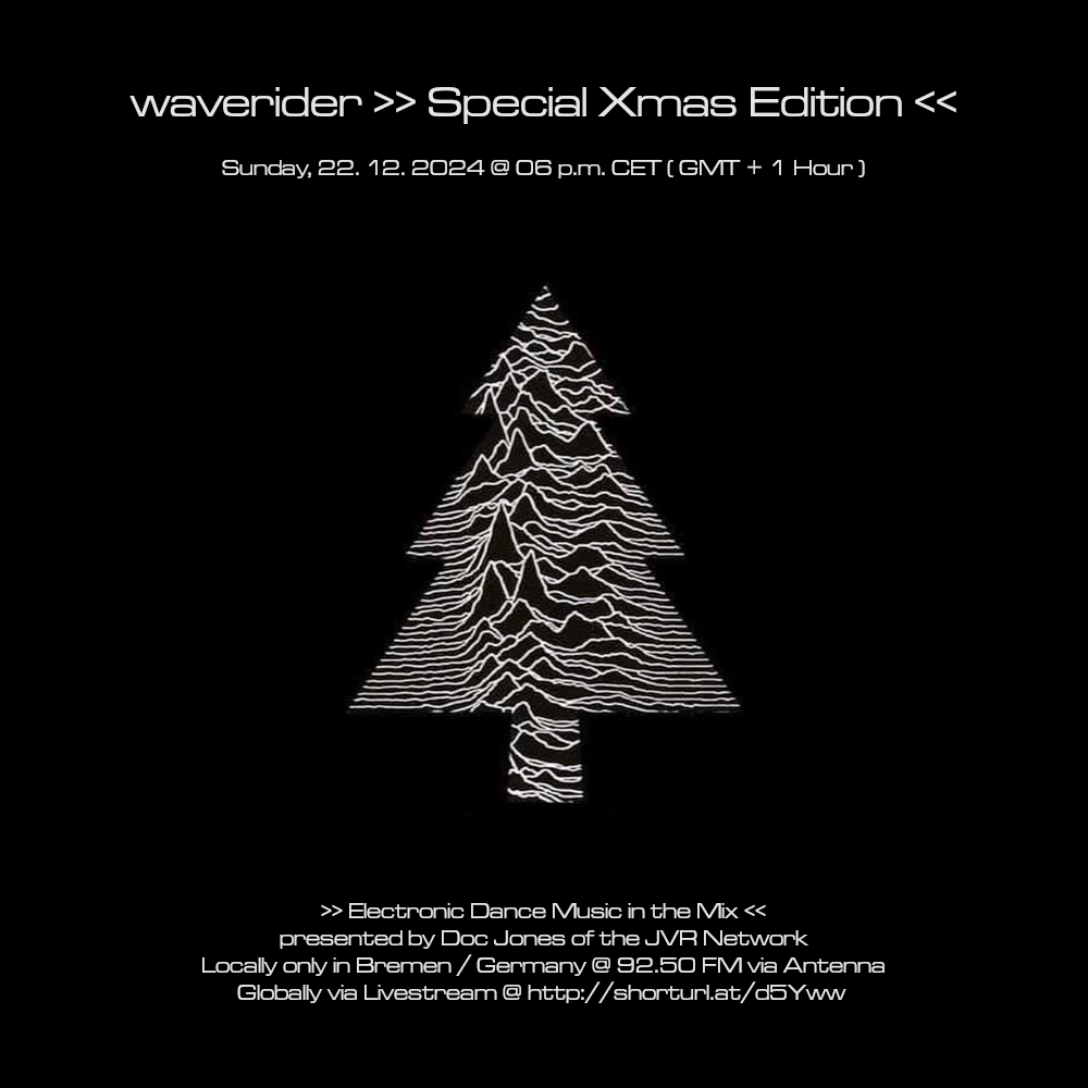 Am So., den 21. Dezember von 18 bis 20 Uhr wird es die Sendung „waverider >> Special Xmas Edition <<“ – live und direkt aus dem „Ivory Tower“ Studio in Bremen-Grohn – mit vielen von Doc Jones individuell ausgewählten und präsentierten Stücken geben! 😀