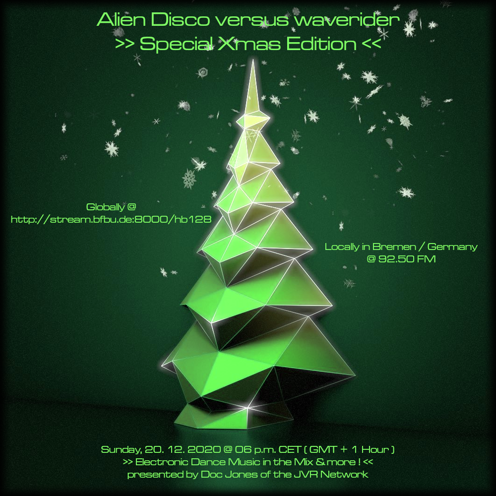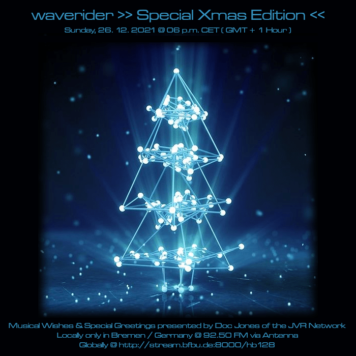 Am So., den 21. Dezember von 18 bis 20 Uhr wird es die Sendung „waverider >> Special Xmas Edition <<“ – live und direkt aus dem „Ivory Tower“ Studio in Bremen-Grohn – mit vielen von Doc Jonesindividuell ausgewählten und präsentierten Stücken geben! 😀